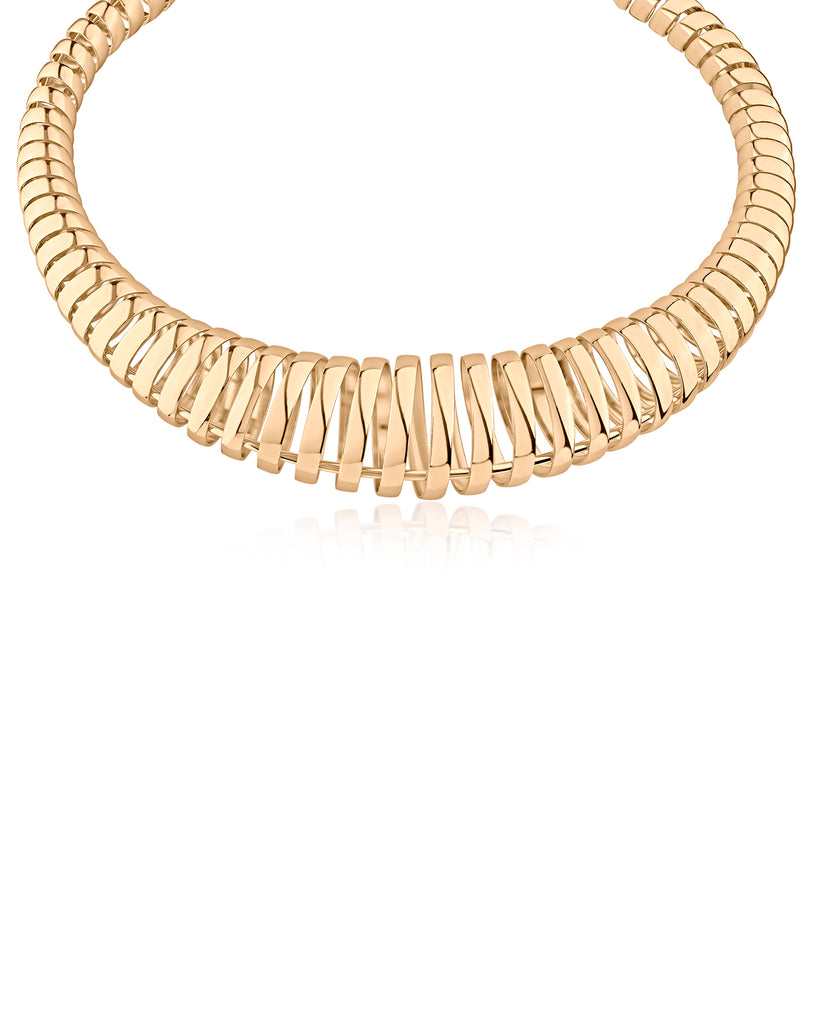 Open Graduated Coil Statement Necklace Make a bold impression with this striking graduated coil design. The sculptural metalwork catches light beautifully, creating dimension and movement. Perfect for elevating any outfit with modern elegance.