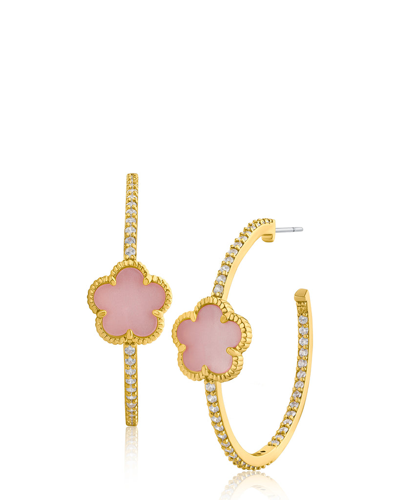 Experience a new twist on a classic with these stunning Clover Hoop Earrings, featuring a center clover design adorned with 3 cttw of glittering pave Cubic Zirconia stones. With multiple color options and a gorgeous gold plated brass setting, these earrings add a touch of elegance to any outfit!