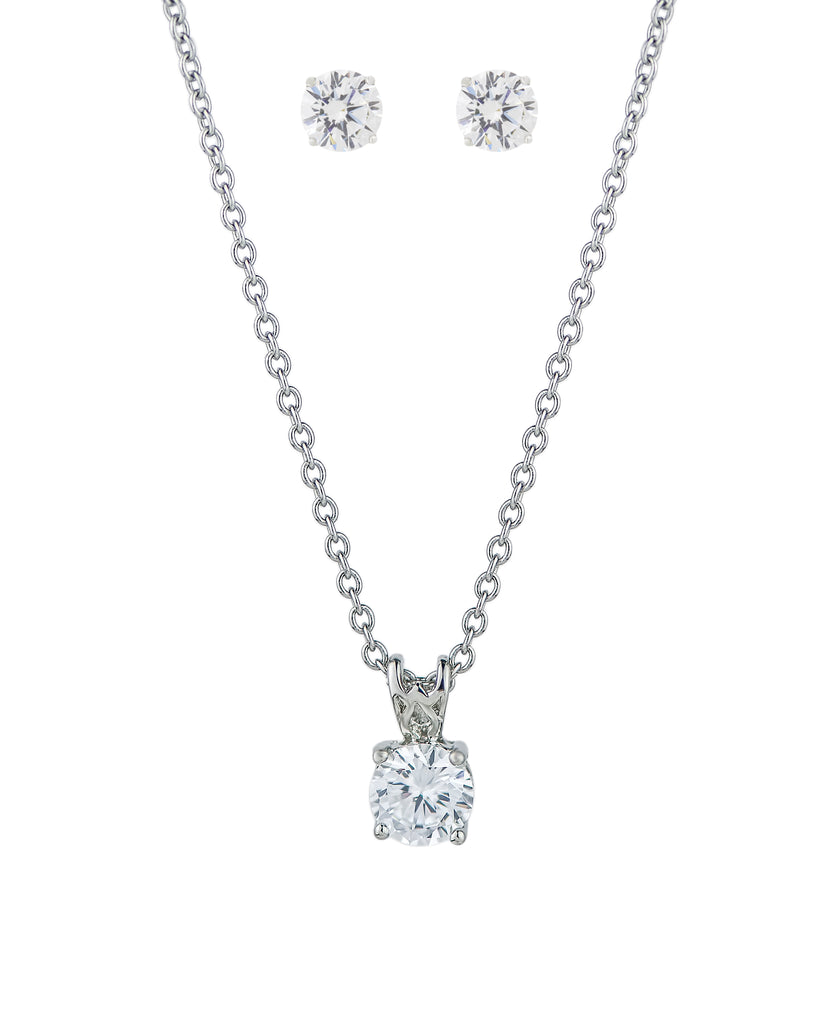 Searching for a present they'll love? Look no further - this stunning 3 cttw Round Cubic Zirconia stud and matching pendant set is the ideal choice!